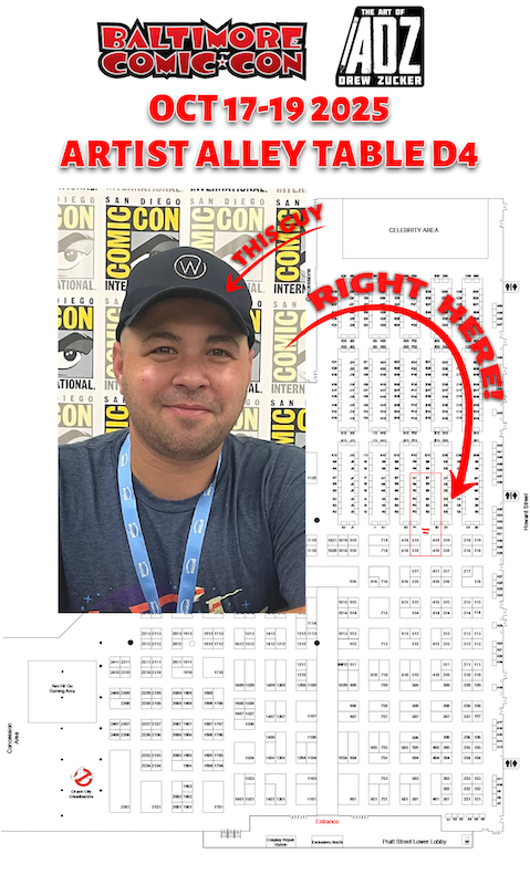 October 17th - 19th come swing by booth Artist Alley table D4 and say hello to Drew Zucker!